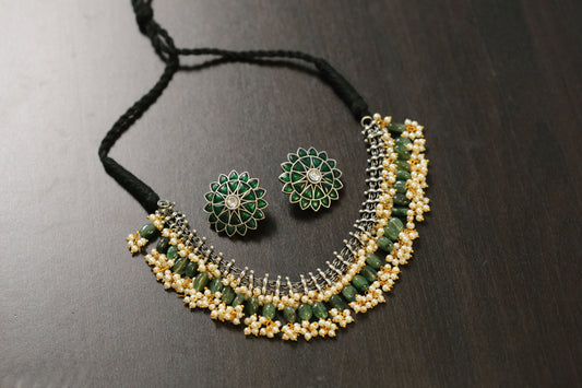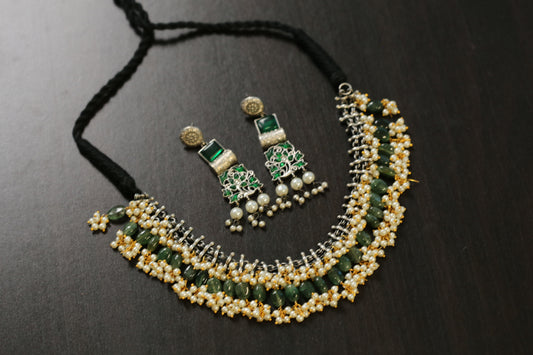 Sirisa Dual Tone Oxidized Necklace Set - Aventurine(T103-29)