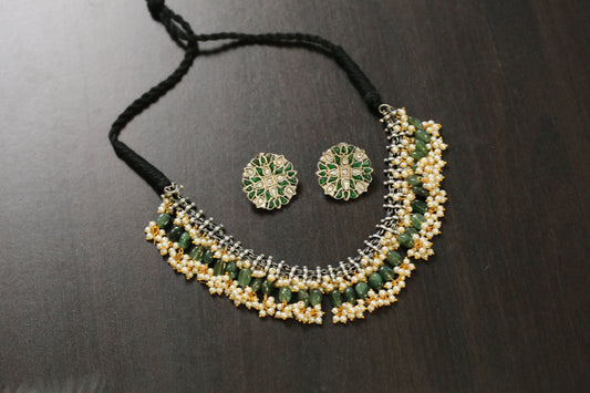 Sirisa Dual Tone Oxidized Necklace Set - Aventurine(T103-31)