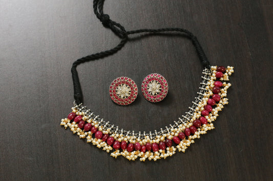 Sirisa Dual Tone Oxidized Necklace Set - Ruby Jade(T103-33)
