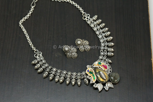 Jadau Kundan Oxidized Necklace Set - Ruby Green