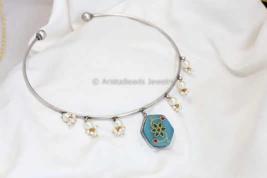 Alia Inlay Kundan Hasli Necklace - Light Blue