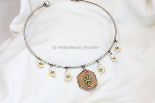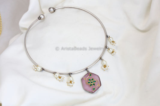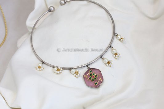 Alia Inlay Kundan Hasli Necklace - Pink Green