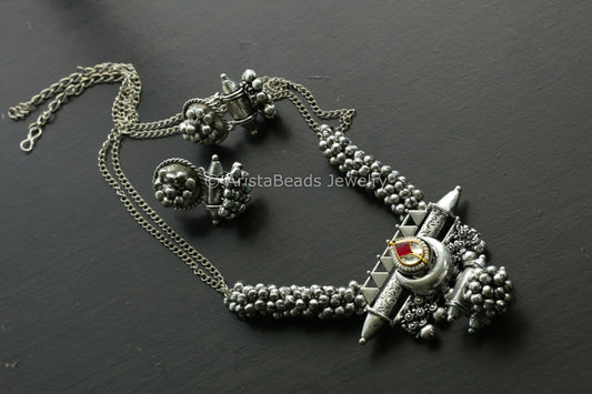 Kemp Kundan Oxidized Necklace Set - Ruby