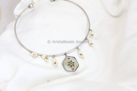 Silver Look Jadau Fusion Necklace Set - Stye 3