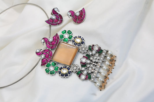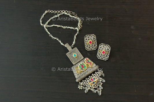 Fusion Kundan Pendant Set -Crystal Quartz Beads