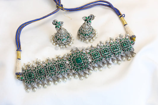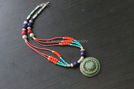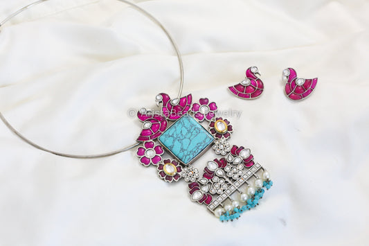 Turquoise Monalisa Stone Jadau Pendant Hasli Set