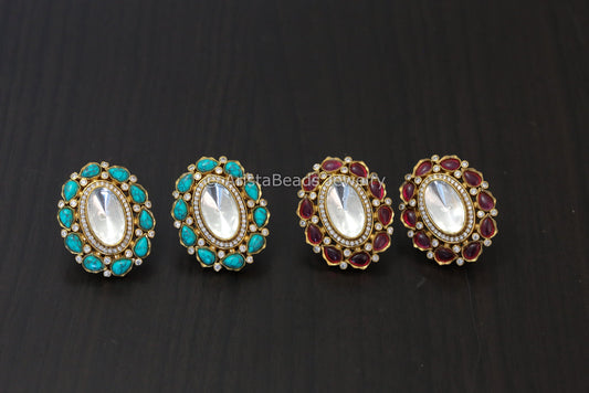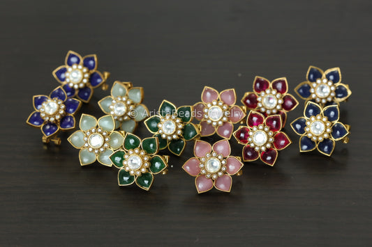 Flower Uncut Kundan & CZ Studs - 6 colors