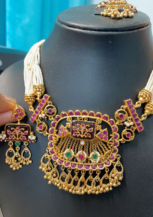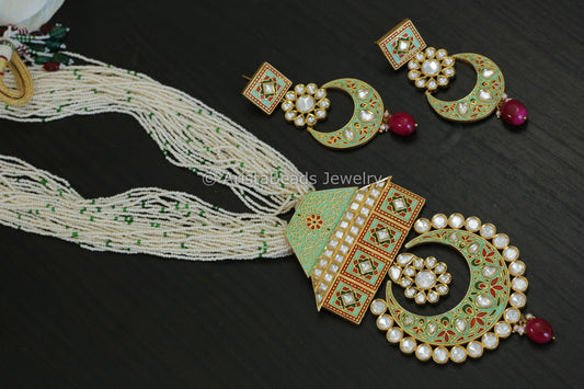 Premium Quality Enamel Uncut Kundan Necklace Set