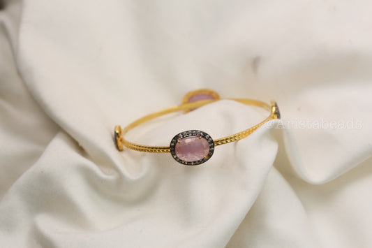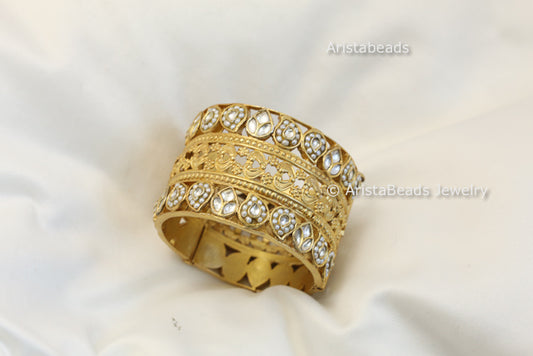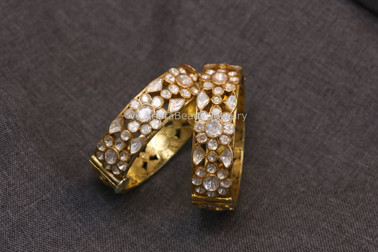Openable 925 Sterling Silver Bangle - Real Moissanite Polki