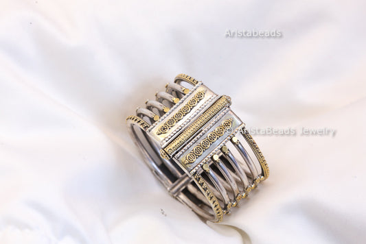 Adjustable 925 Sterling Silver Dual Tone Bangle