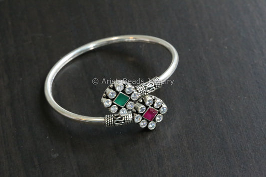 Openable 925 Sterling Silver Dual Tone Bracelet - Ruby Green