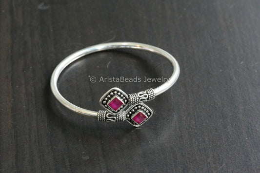 925 Sterling Silver Ruby Bracelet ( Adjustable)