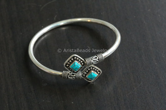 925 Sterling Silver Turquoise Bracelet ( Adjustable)