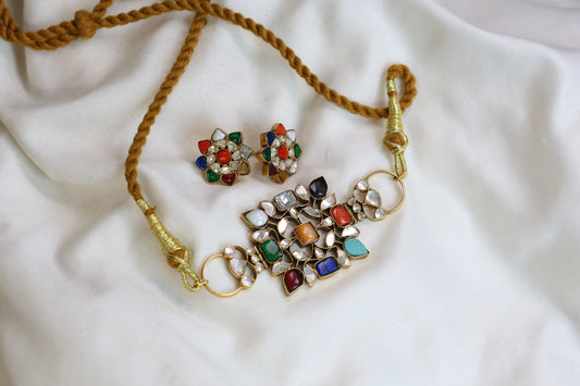 925 Silver Navratan Choker Set
