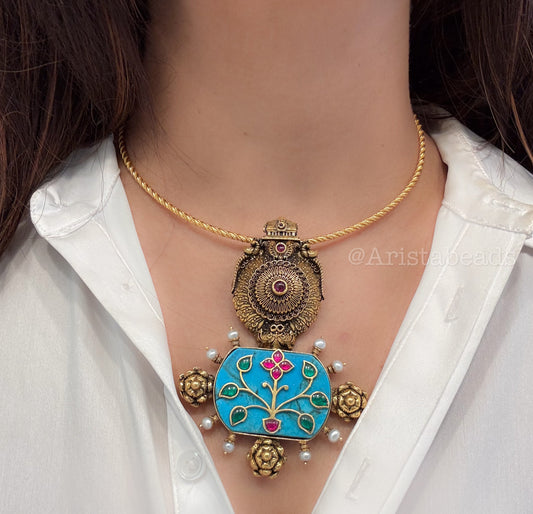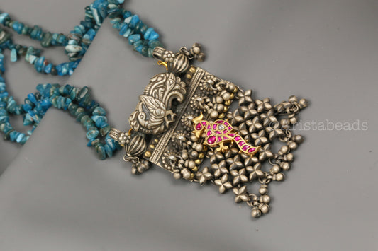 925 Silver Turquoise Kundan Inlay & Temple Motif Pendant
