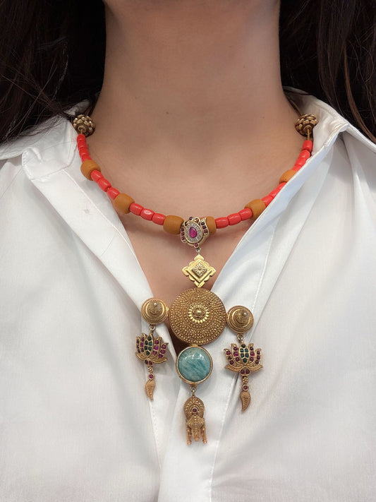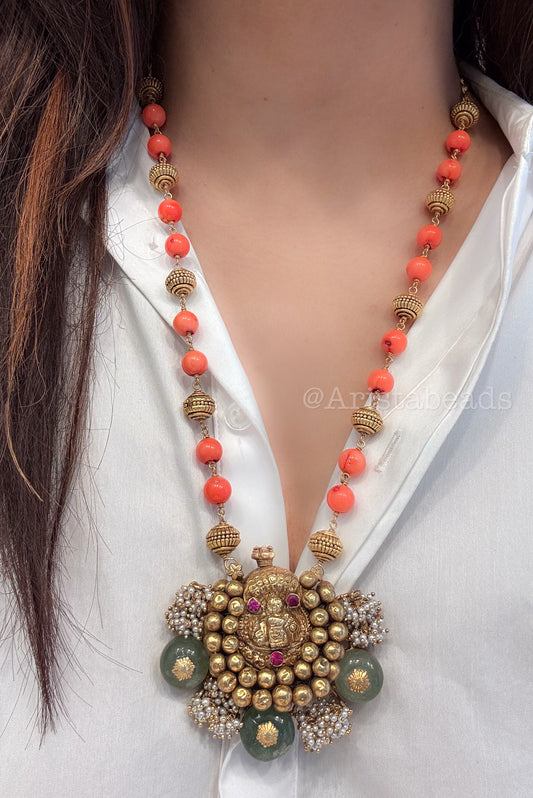 925 Silver Kemp Temple Hasli Necklace - Coral Beads