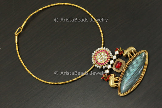 925 Sterling Silver Kundan Hasli Necklace - Labradorite
