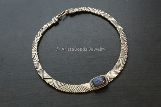 Contemporary 925 Sterling Silver Labradorite Chain Necklace