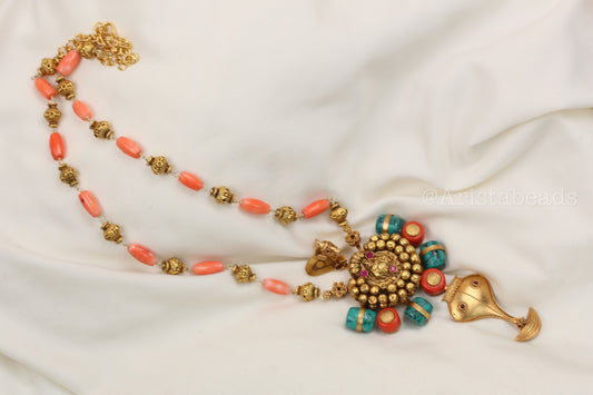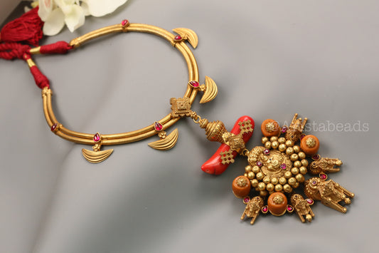 925 One Of A Kind African Coral Kemp Temple Hasli Necklace