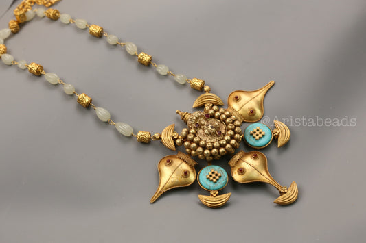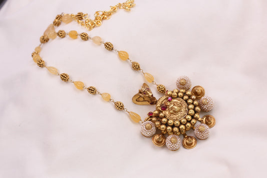 Vintage 925 Silver 3D Nandi Nagaru Pendant in Silver & Citrine Beads Mala