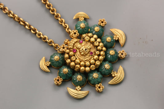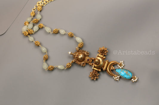 925 Silver Temple Turquoise Kundan Inlay Pendant