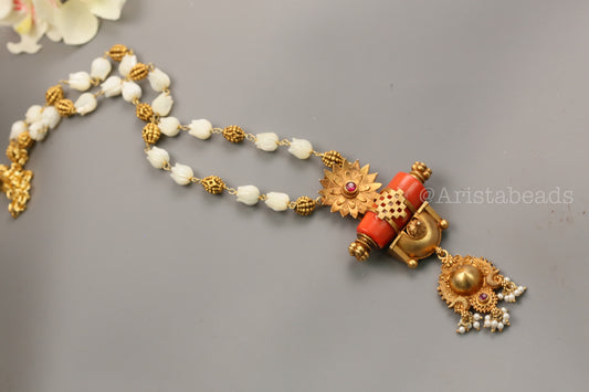 925 Silver Coral Temple Necklace In MOP Tulip Beads
