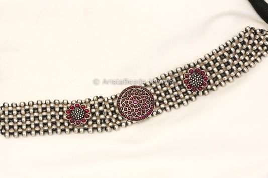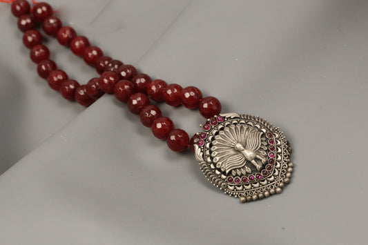925 Silver Kundan Necklace in Ruby Jade Mala