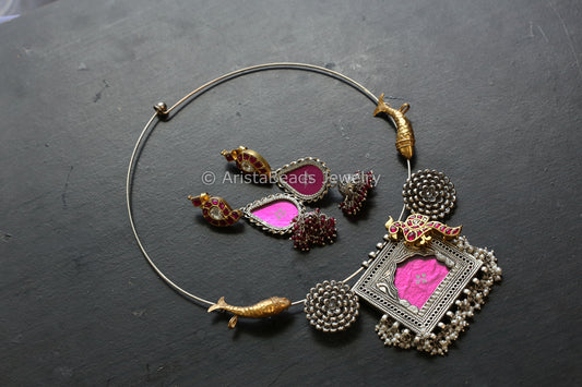 Unique 925 Silver Kundan Jharoka Necklace Set
