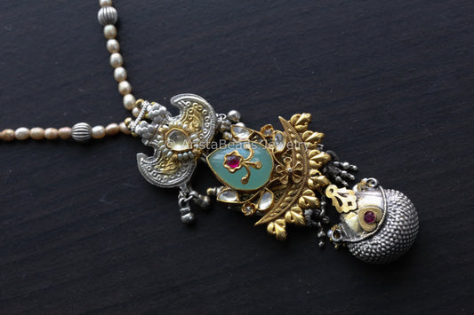 925 Sterling Silver Designer Dual Tone Necklace ( Real Pearls)