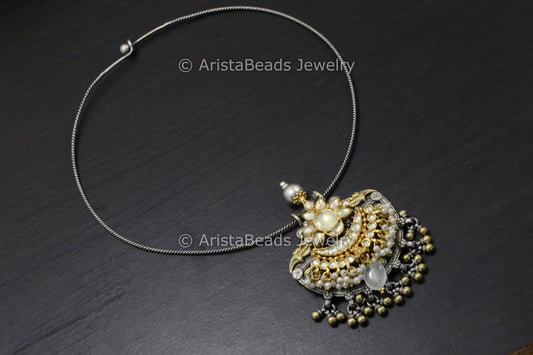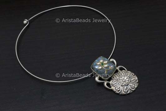 925 Silver Kundan Motif Hasli Necklace