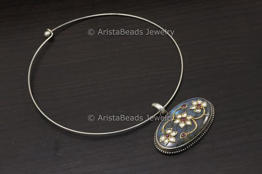 925 Silver Jadau Work Hasli Necklace - Labradorite