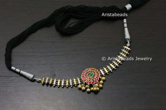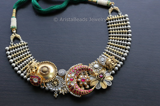 925 Sterling Silver Jadau Kundan Thusi Necklace