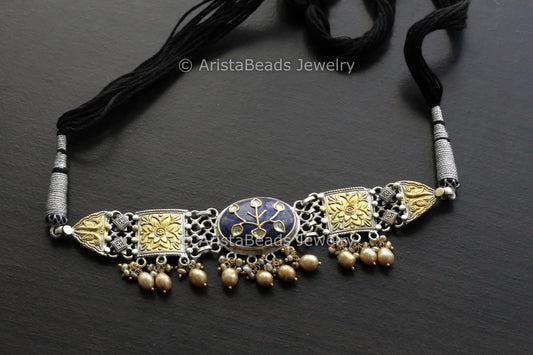 Two Tone Jadau Kundan Lapis Lazuli Necklace