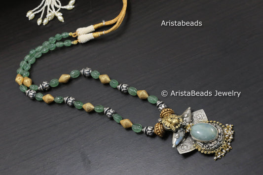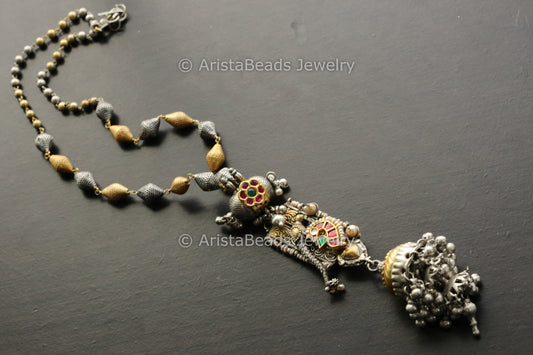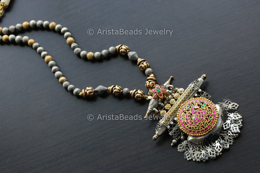 925 Silver Jadau Kundan Beaded Necklace