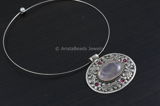925 Silver Delicate Rose Quartz Hasli Necklace
