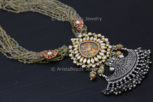 925 Fusion Kundan Necklace In Silver Labradorite Chains