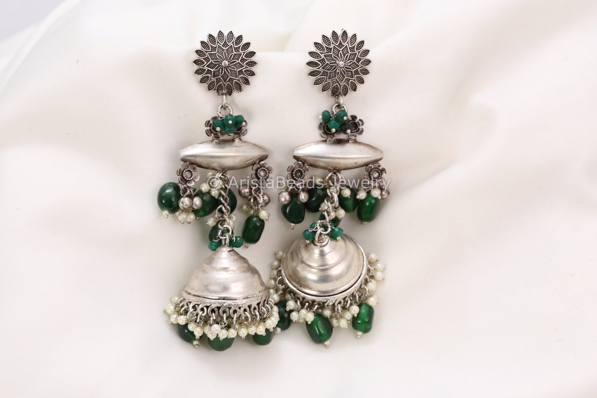Long 925 Silver Polish Jhumka - Green