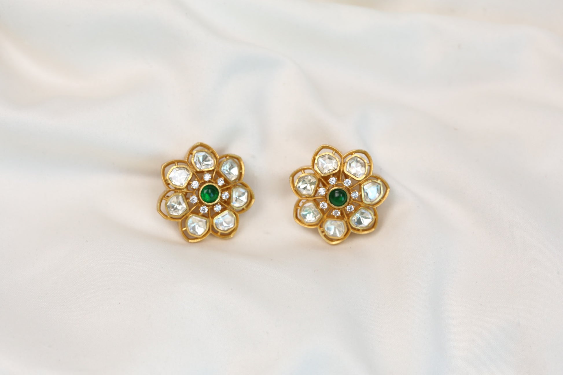 Aavni Real Moissanite & Pota Stones Studs - Green