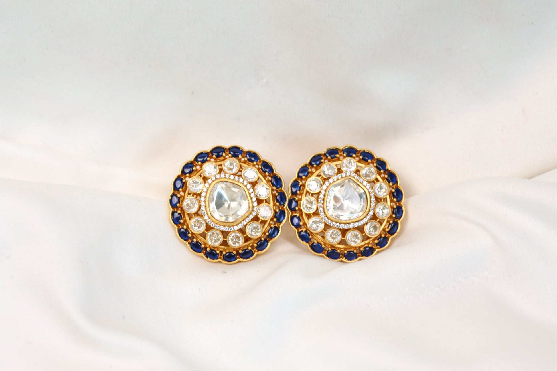 Aarti Real Moissanite & Pota Stones Studs- Blue