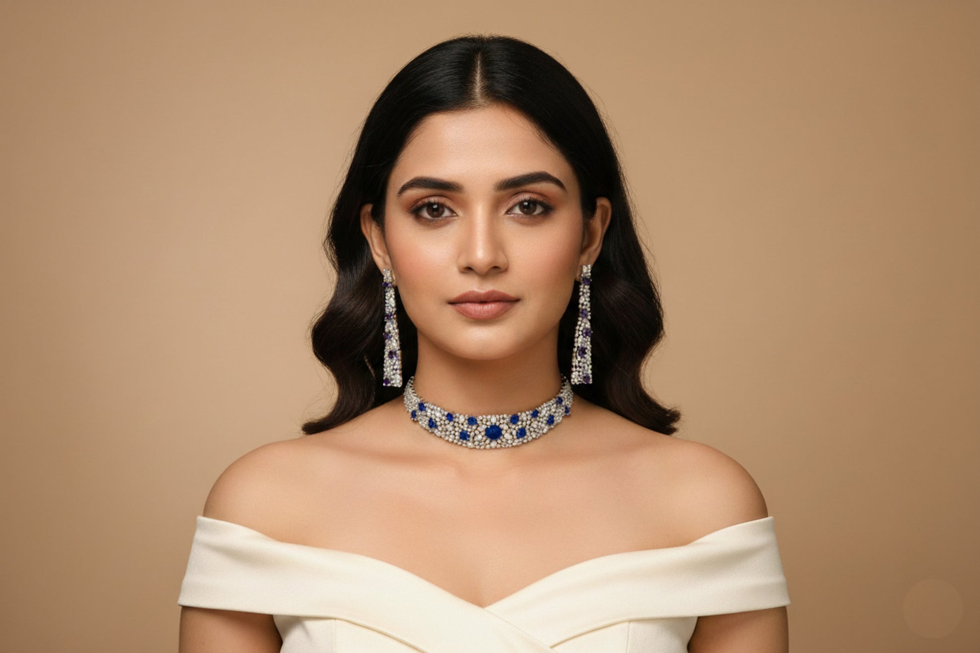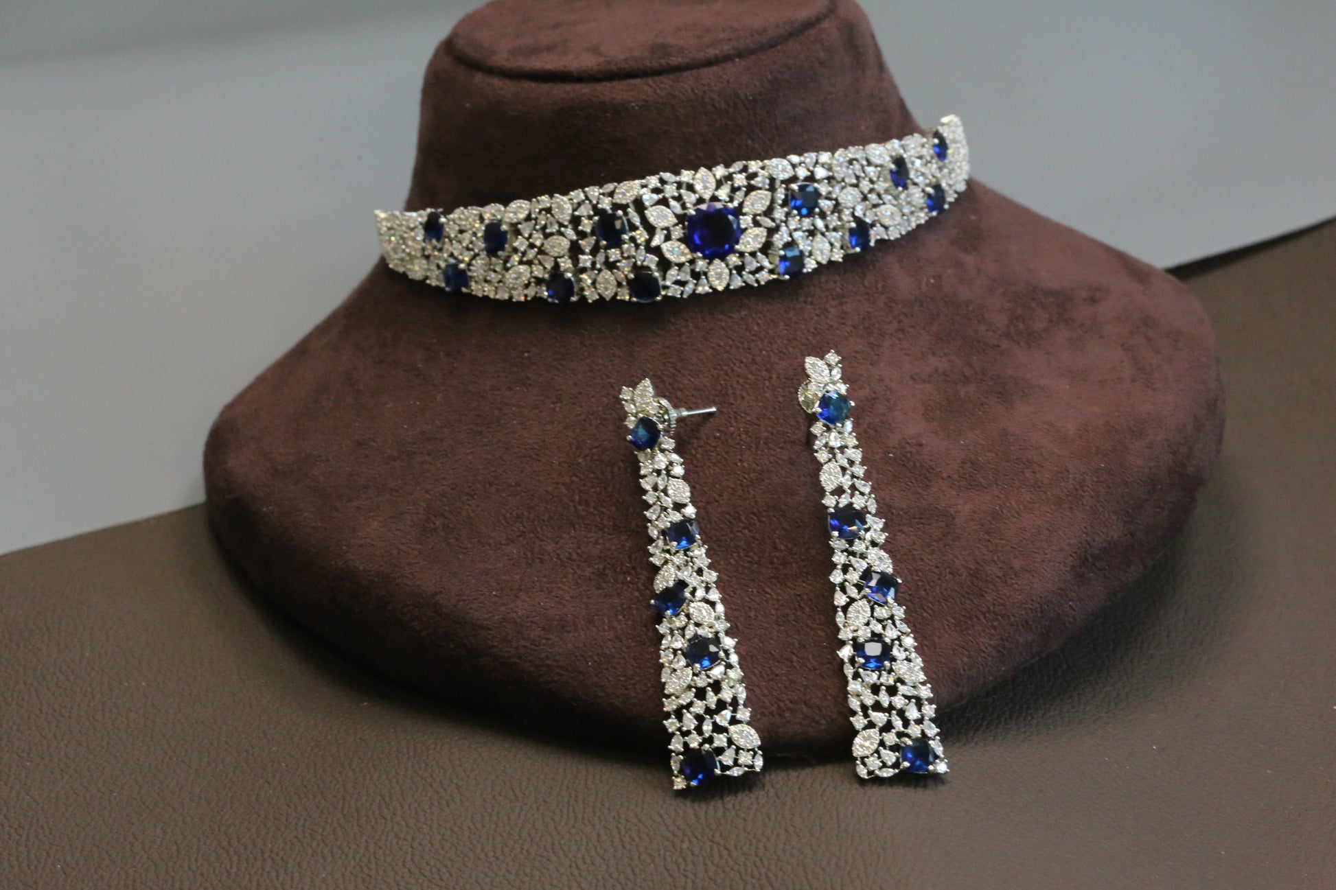 Discover the allure of the Avanti Premium CZ Choker Set in blue, designed to add a bold splash of color and sparkling brilliance to your ensemble. This finely crafted choker features premium cubic zirconia doublets that shimmer with every movement, making it an essential accessory for turning heads at any event. Elevate your style effortlessly with this stunning statement piece.