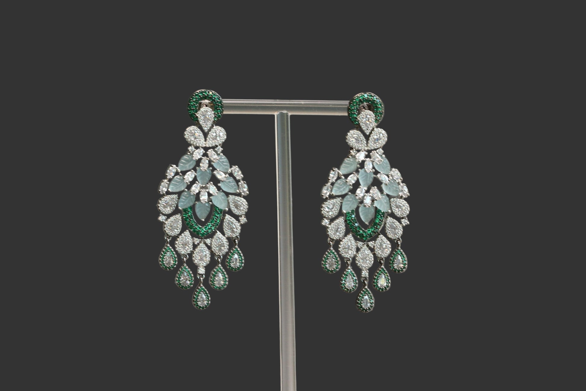 Carved Stones Doublet Micro CZ Earrings - MintLength - 3 inches