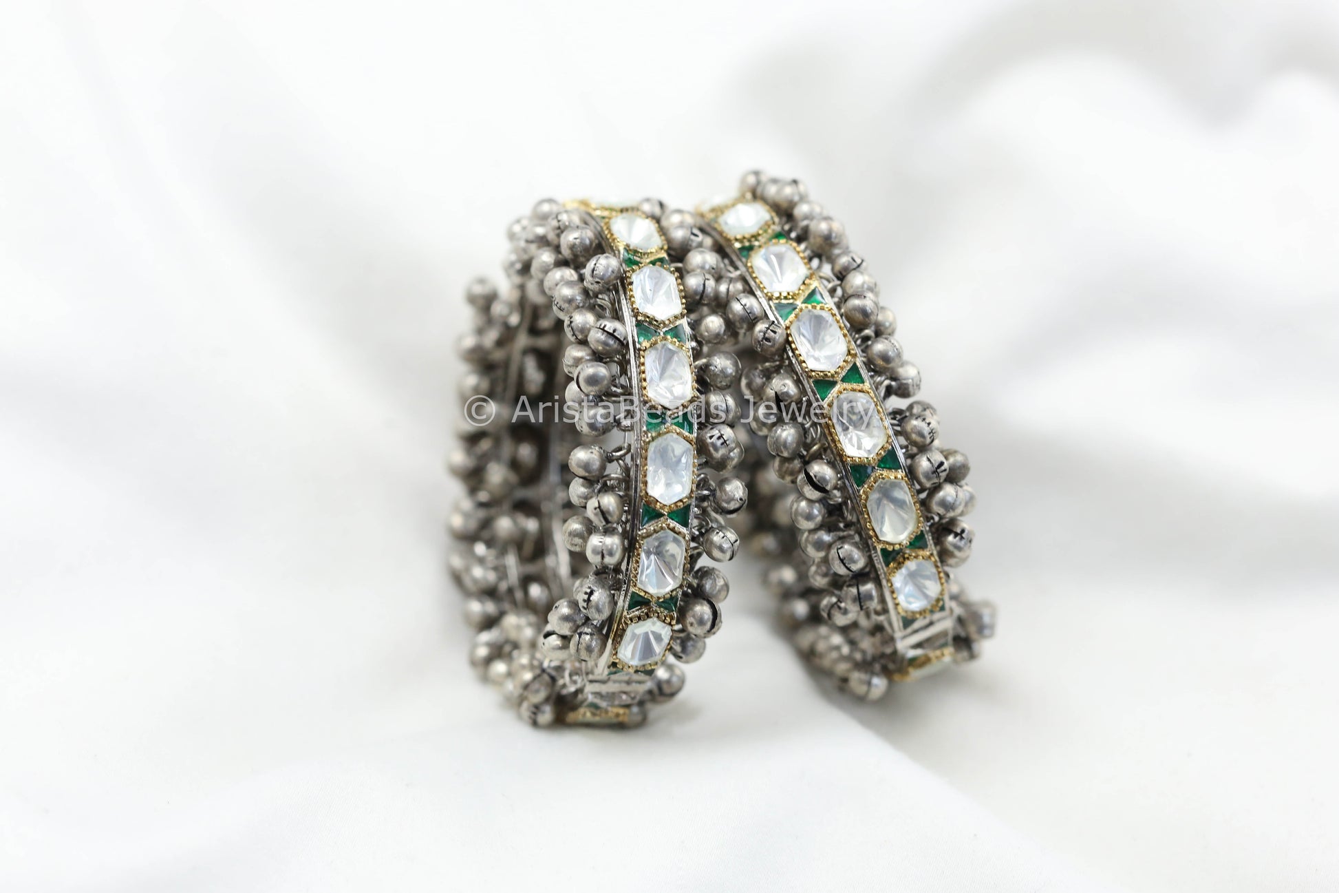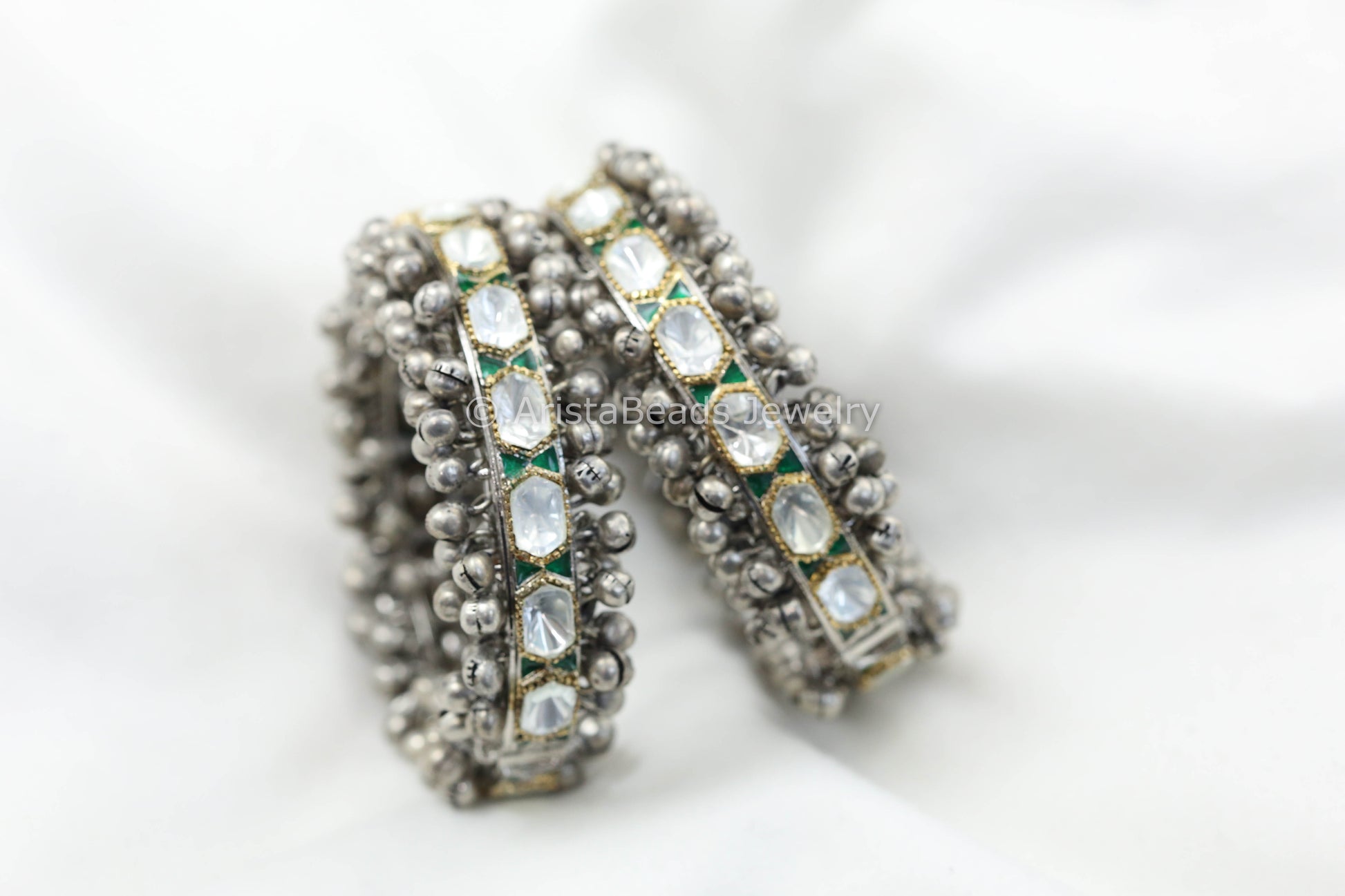Polki Kundan Enamel Ghungroo Bangle Set - Green (2.2/2.4)