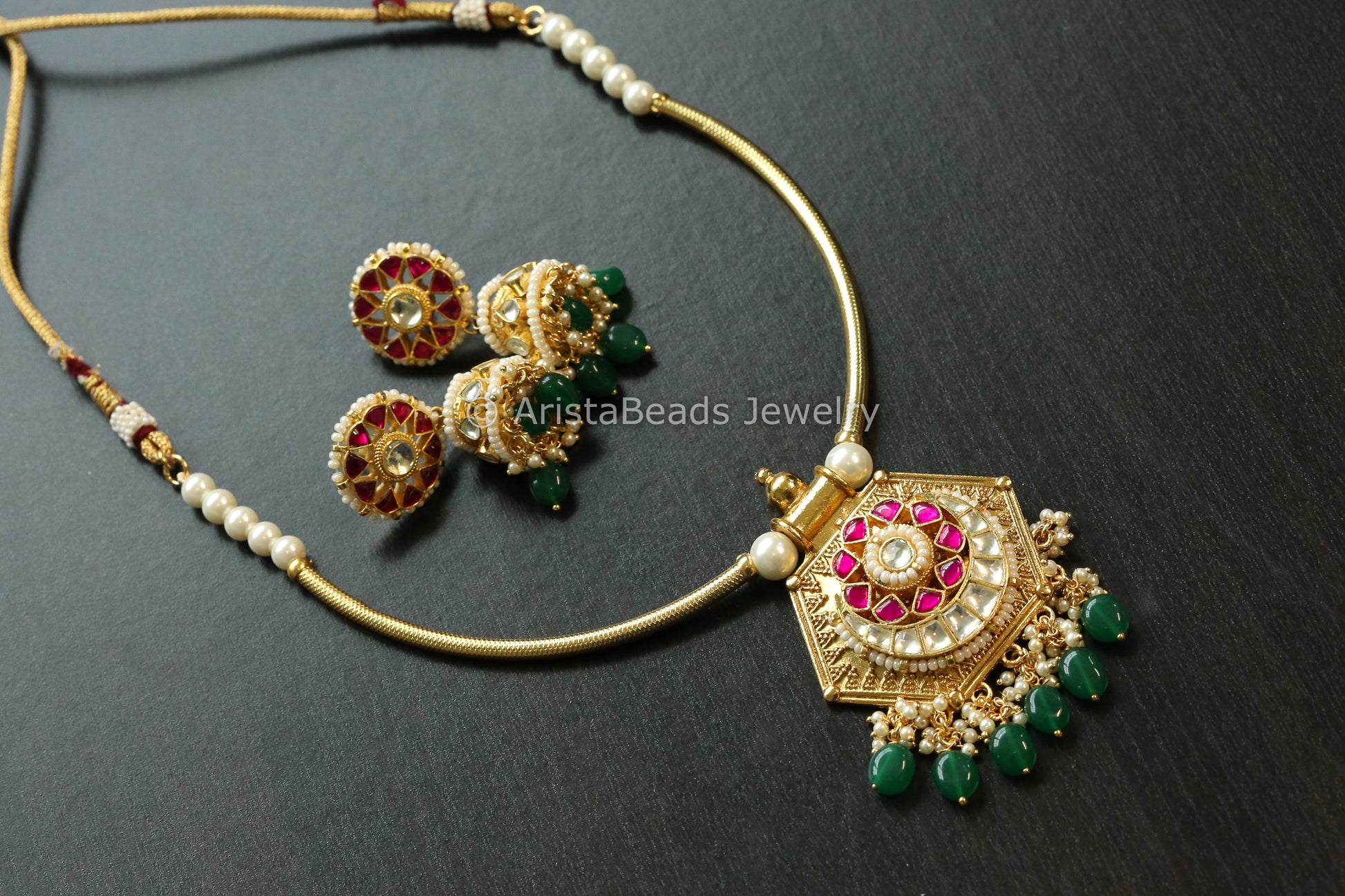 Dainty Kundan Tabeez Hasli & Jhumka Necklace Set (103-06)