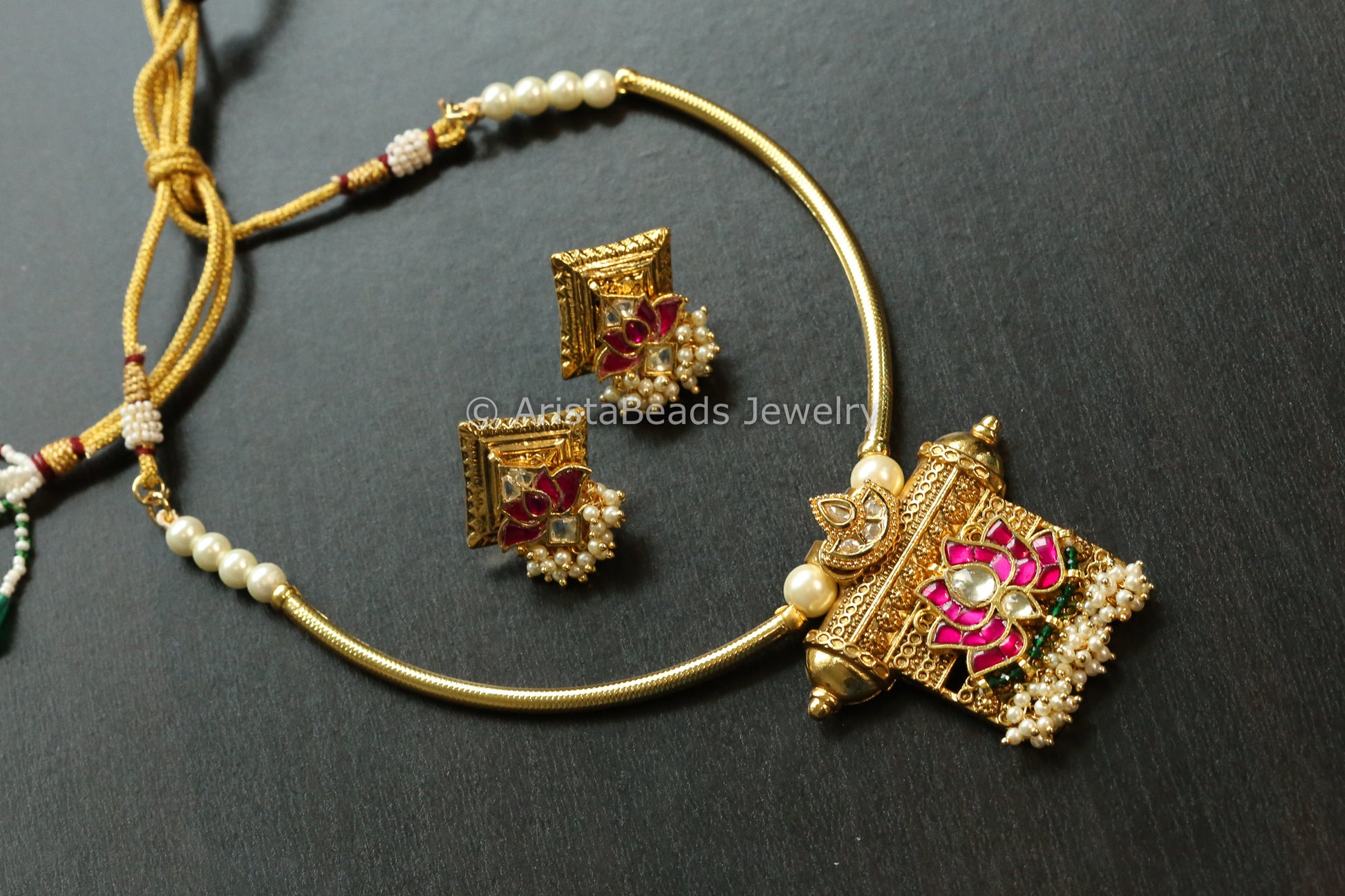 Dainty Kundan Tabeez Hasli Necklace Set (103-05)