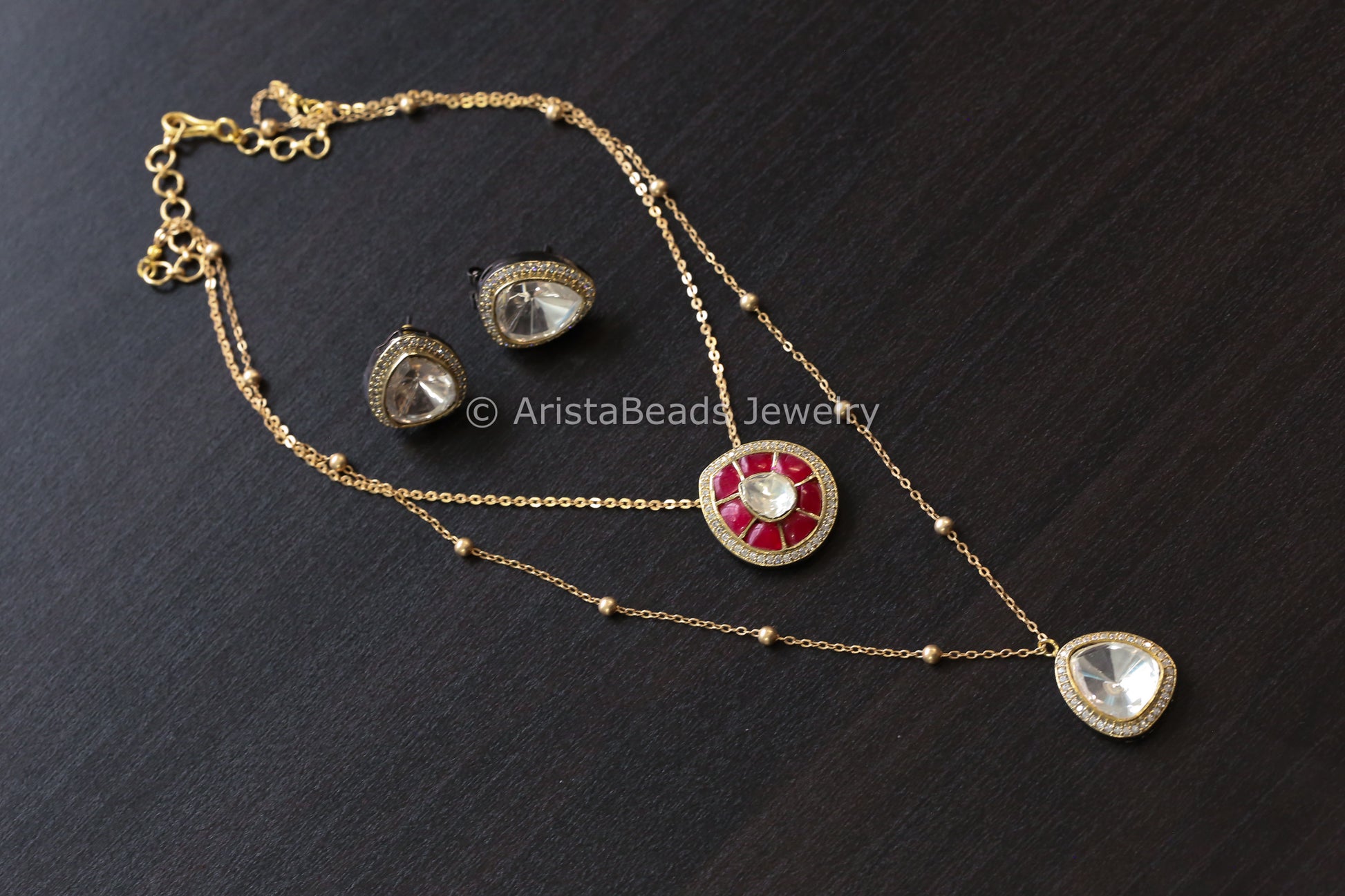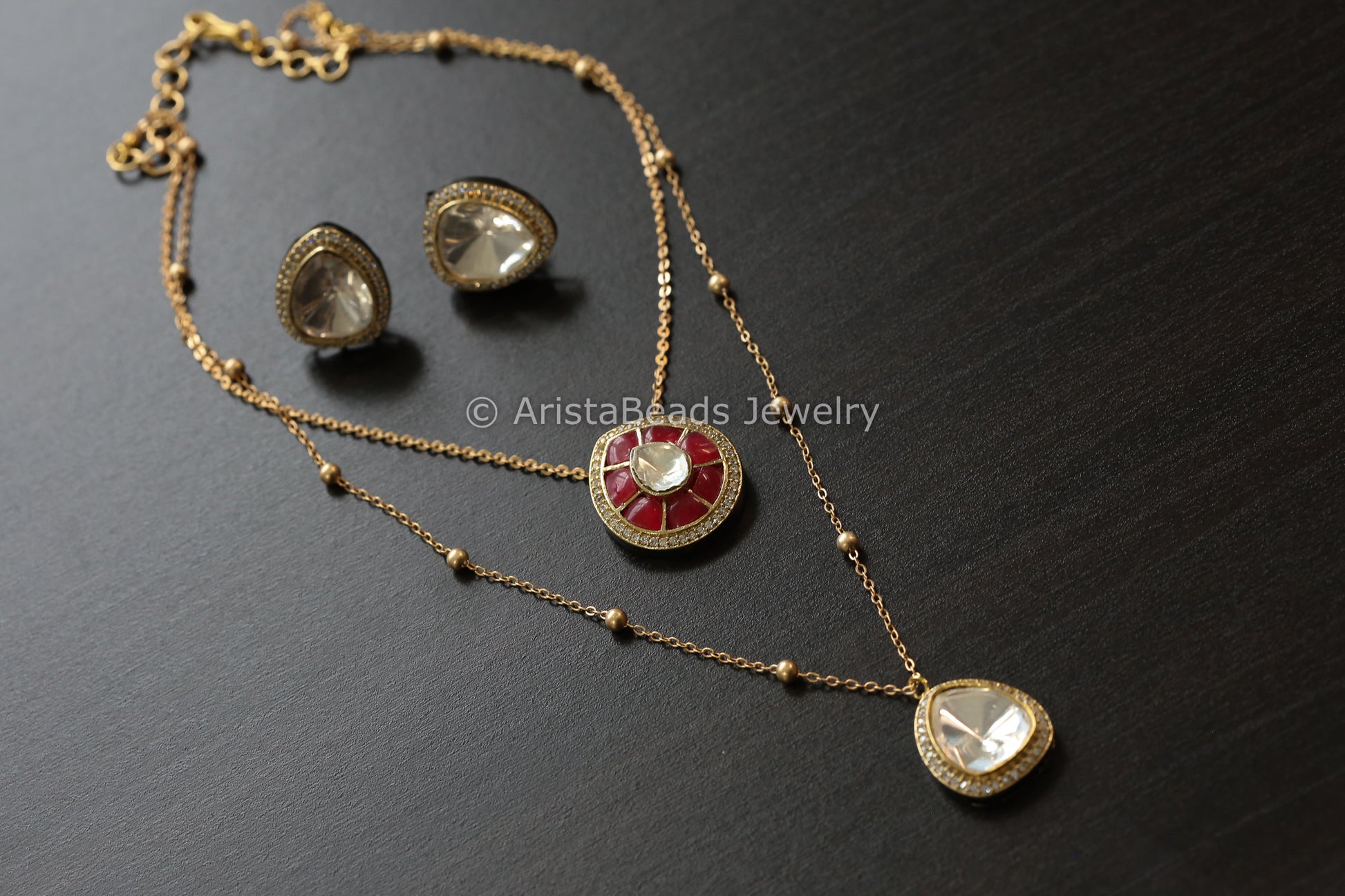 Dainty Layered Jadau Kundan & Polki Necklace Set (102-52)