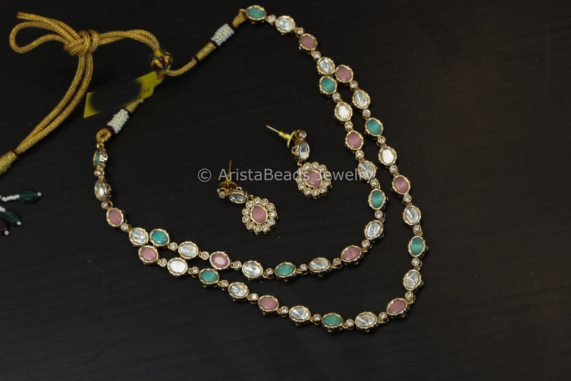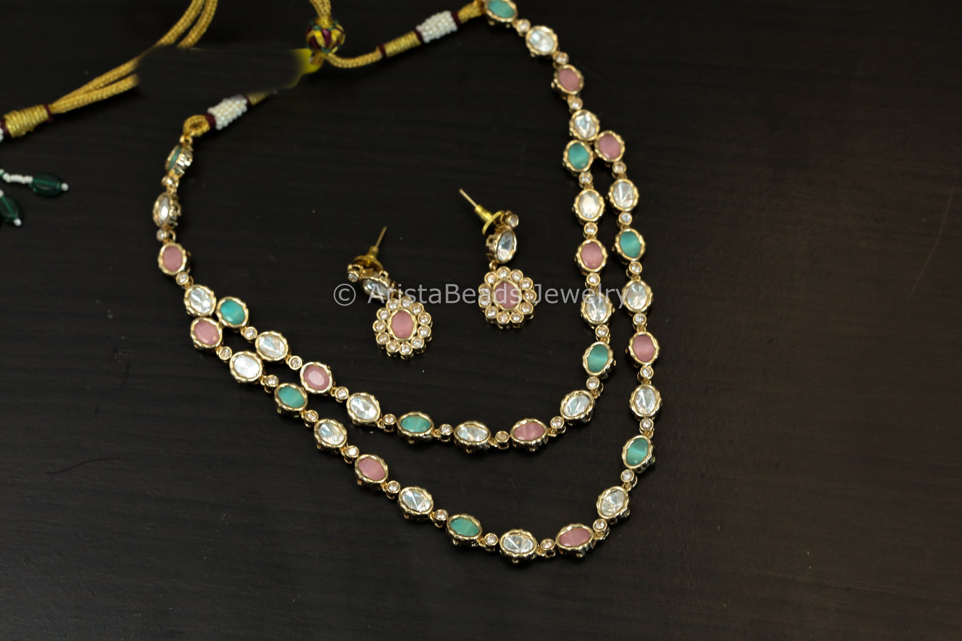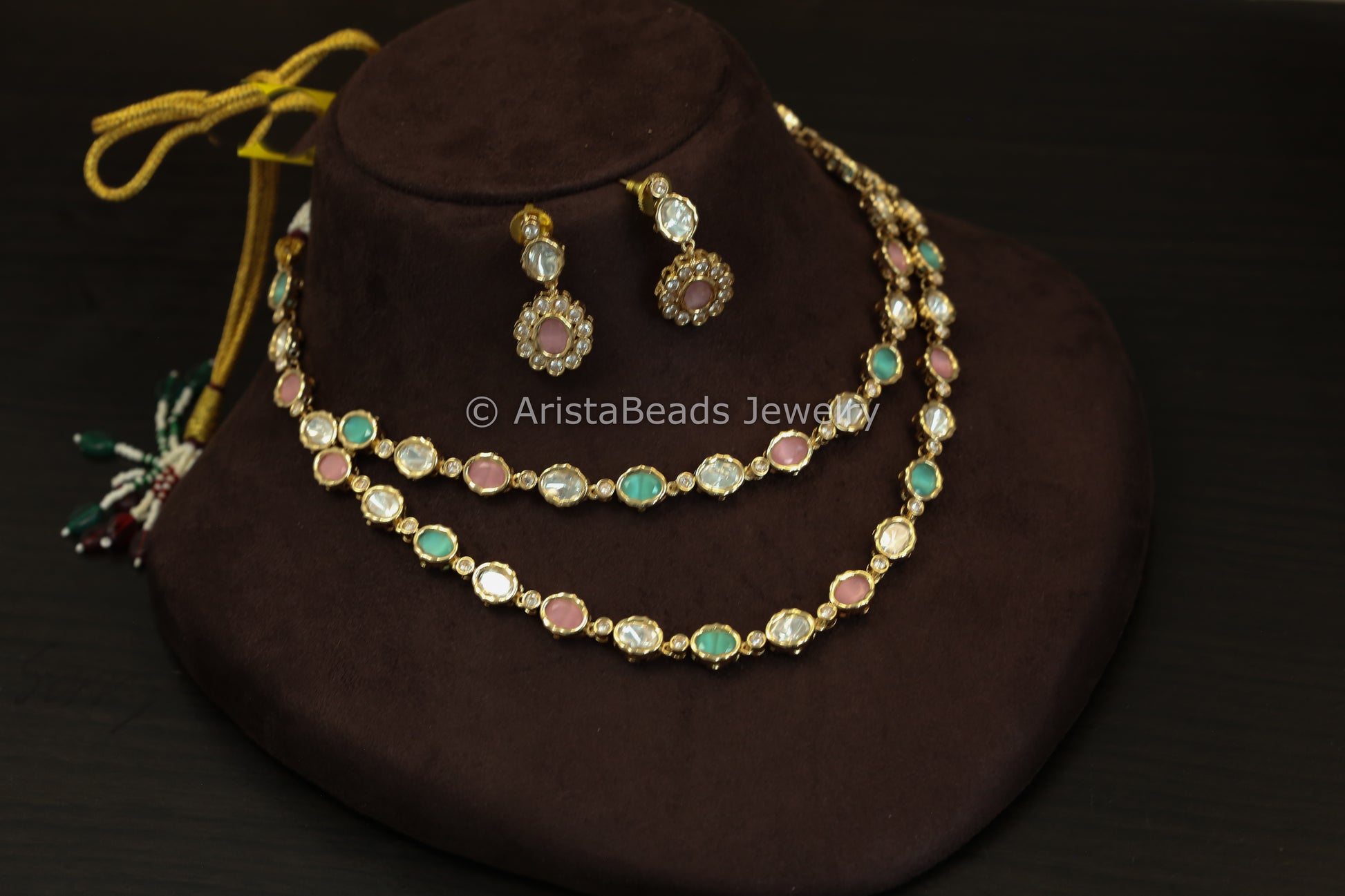 Dainty Layered Uncut Polki Necklace Set - Pastel