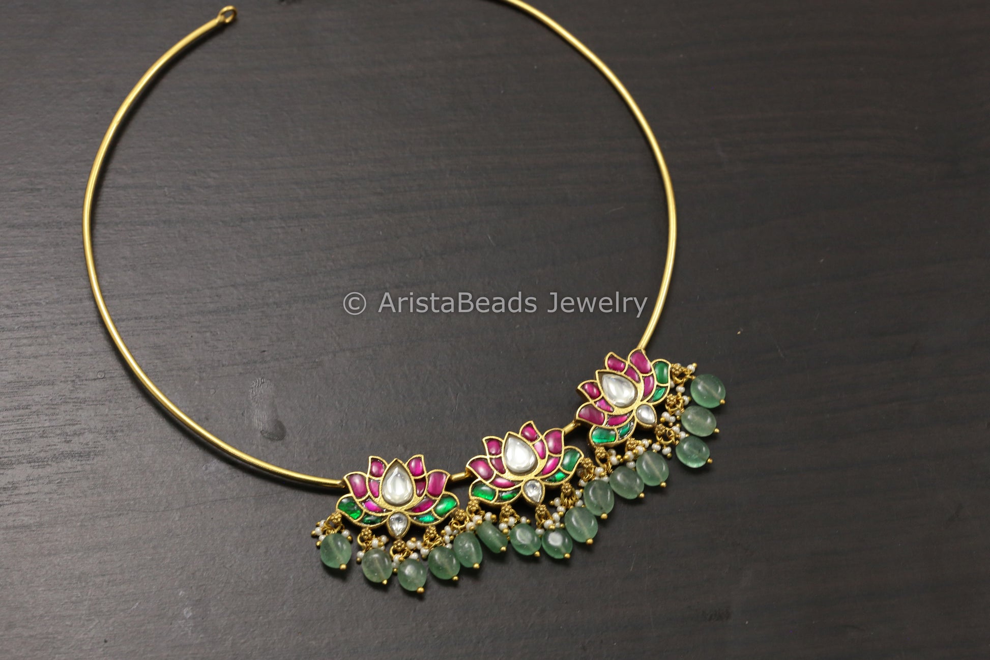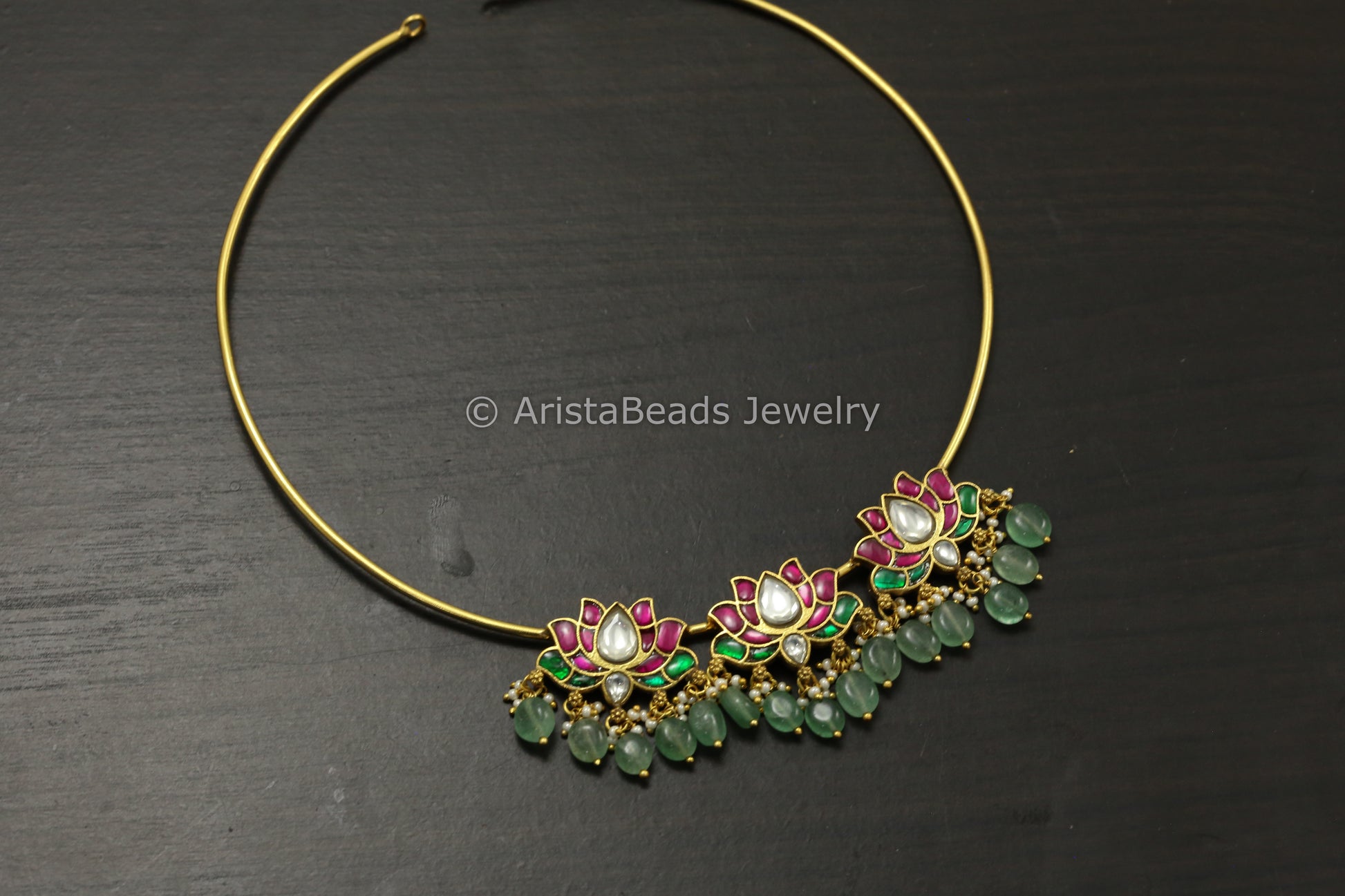 Dainty Lotus Jadau Kundan Hasli Necklace