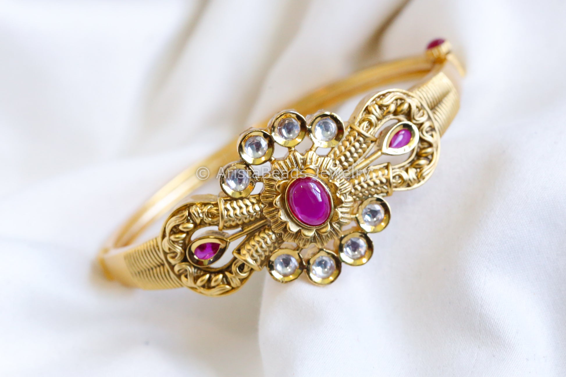 Dainty Matt Gold Uncut Foil Kundan Bracelet - Ruby
