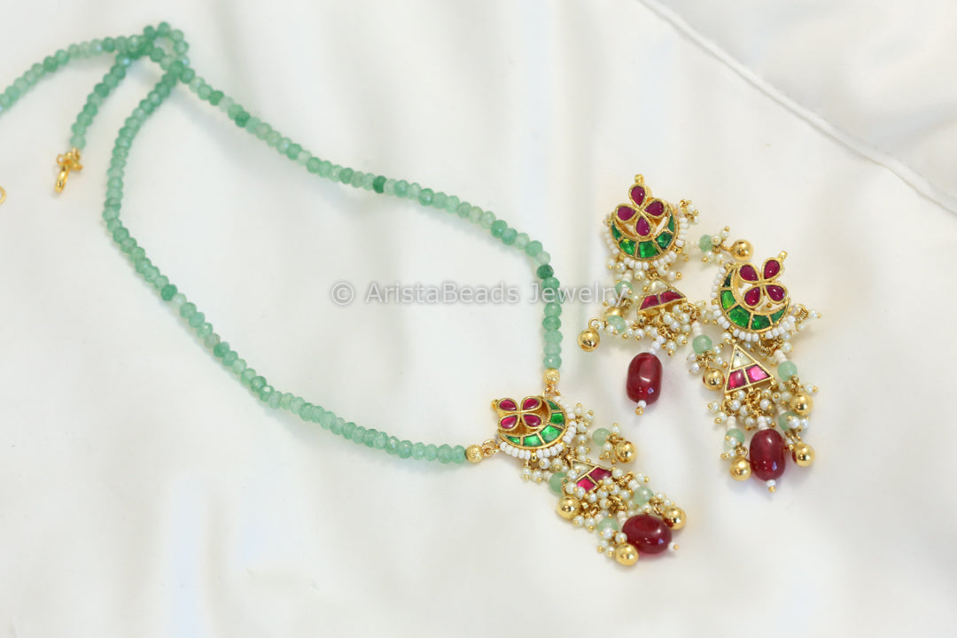 Dainty Pachi Kundan Green Onyx Necklace Set