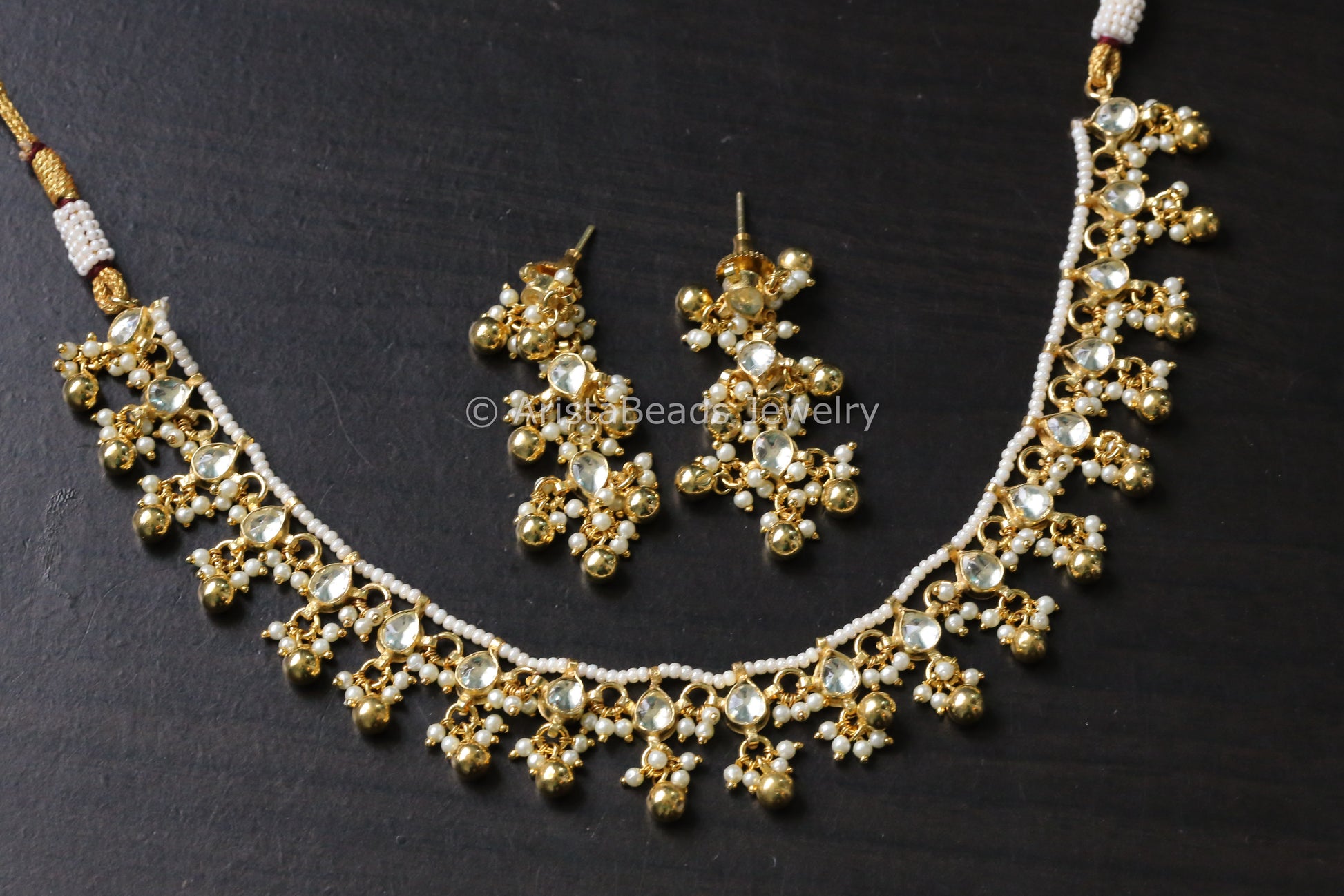 Dainty Pachi Kundan Necklace Set - Clear